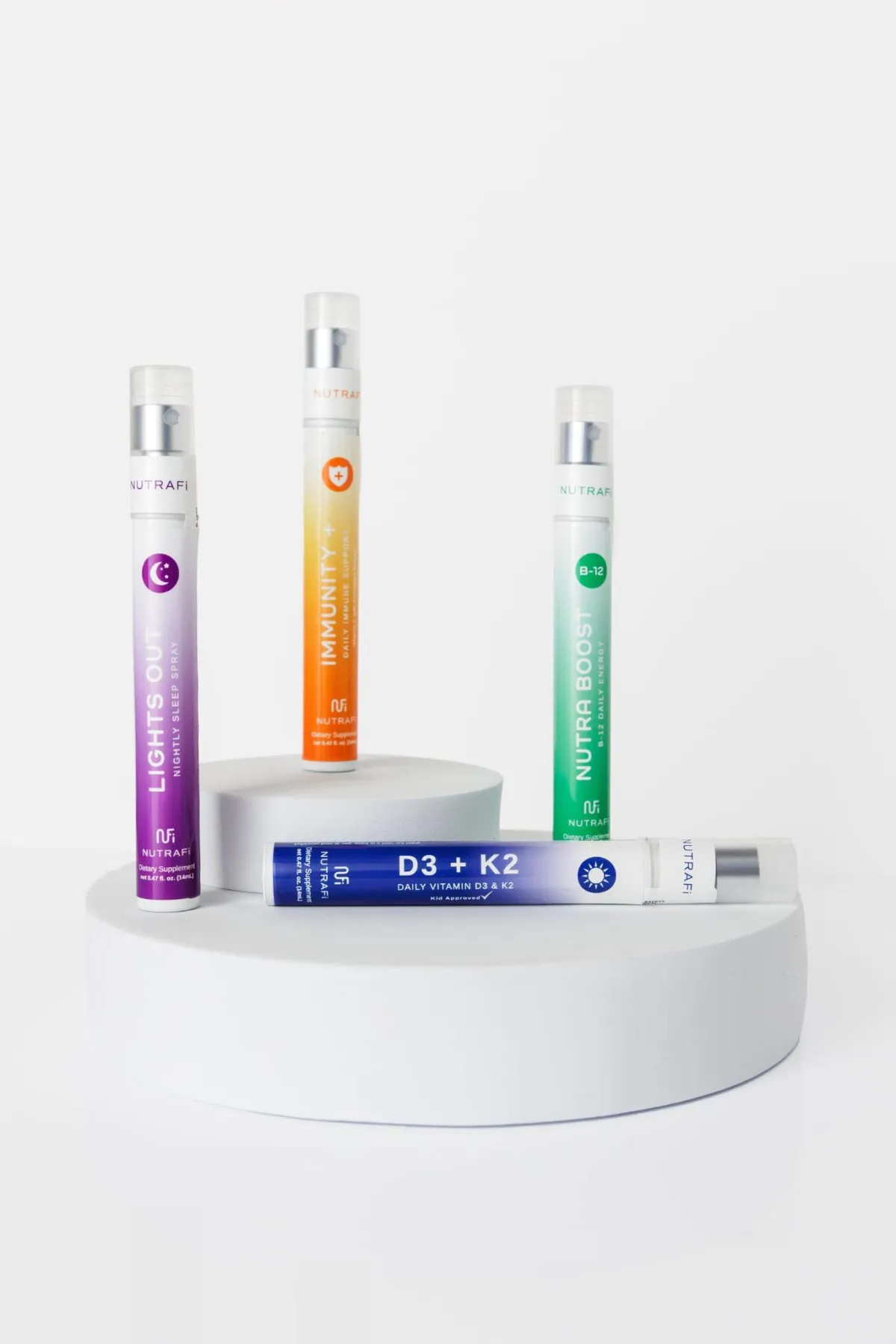 Los sprays de NUTRAFi son el epítome de la comodidad y el bienestar en los viajes, diseñados para el aventurero moderno. Estas maravillas compactas y aprobadas por la TSA son la prueba de que mantener tu rutina de salud no tiene por qué ser complicado, sin importar a dónde te lleven tus viajes. Lo suficientemente delgados como para deslizarse en los compartimentos más pequeños de tu bolso o mochila de gimnasio, son el compañero perfecto para quienes se niegan a comprometer su bienestar.